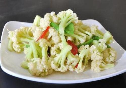 将花菜洗净,切成小块,用开水焯去除苦味。热锅凉油,放入蒜末爆香,再加入花菜翻炒,最后加入适量的盐和鸡精,翻炒均匀即可。简单吧?这样一道清脆可口的花菜就完成了!